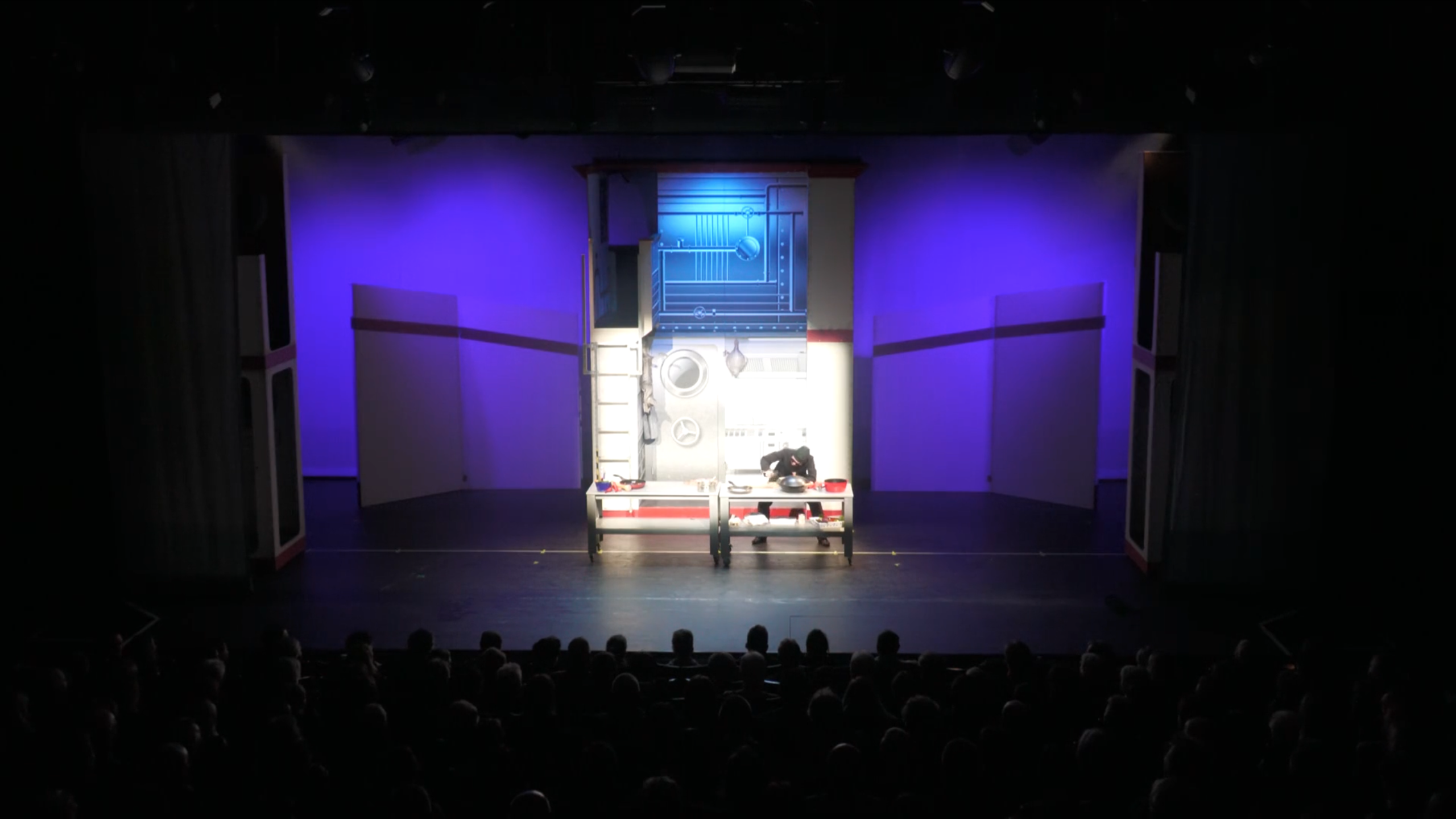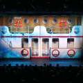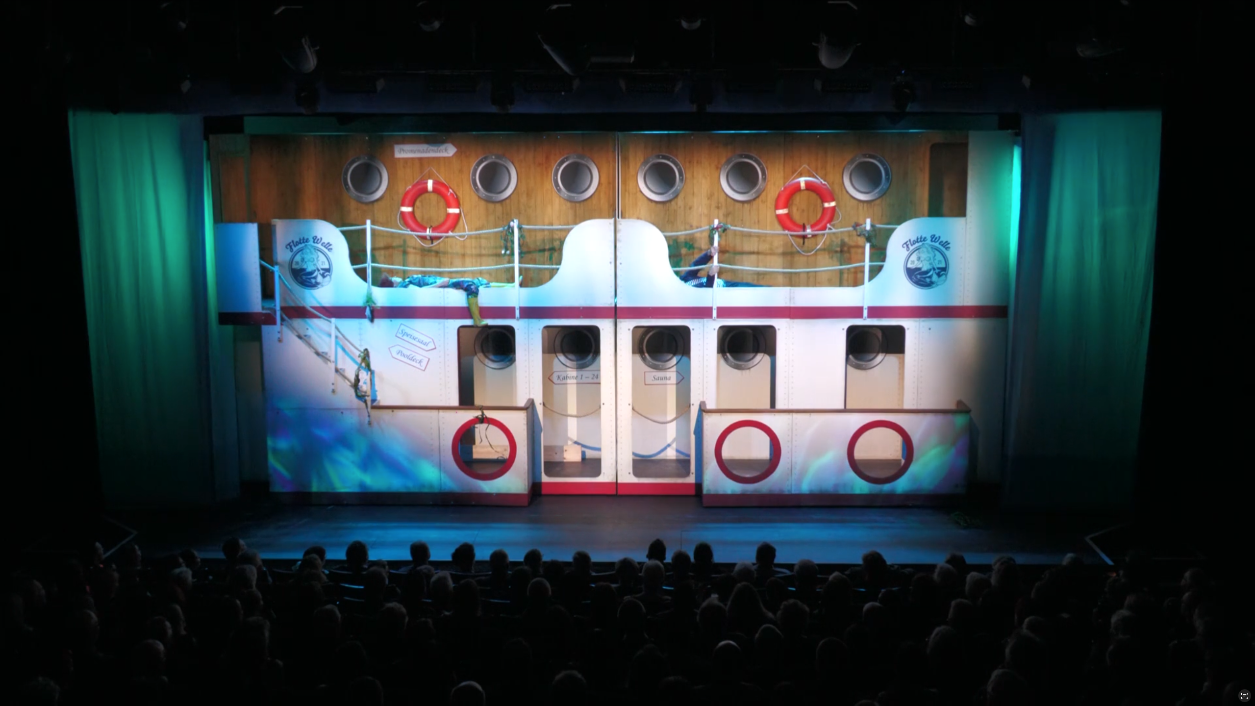 Wir bieten hier ein komplettes Bühnenbild eines unser abgespielten Stücke. Es besteht aus 3 Wägen mit jeweils zwei Ebenen. Zwei der Wägen lassen sich als Reling arrangieren. Diese ist gesamt ca. 8m breit. Die obere Ebene kann über eine, für das Publikum sichtbare und eine rückwärtige, Treppe erreicht werden. Der 3. Wagen stellt 3 Bilder dar, eine Kombüse mit darüberliegender Brücke und auf der Rückseite eine angedeutete Kabine. Alle Wägen basieren auf dem Ventum Theaterbaukasten, diese Elemente sind nicht Teil der Anzeige. Die Wägen haben bei uns auf einer Bühne von 18m Breite (12m Portal), 6m Tiefe und 4,2m Höhe gespielt. Bei Fragen oder Kaufinteresse meldet euch gern bei uns.